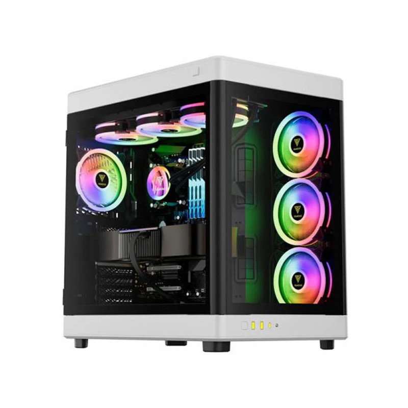 کیس کامپیوتر گیمینگ آکواریومی Mid Tower فاطر مدل FG-880B، سازگار با مادربردهای ATX، E-ATX، microATX و Mini-ITX، دارای 4 فن از پیش نصب شده با نورپردازی ARGB، پشتیبانی از واترکولینگ تا ابعاد 360 میلی‌متر
